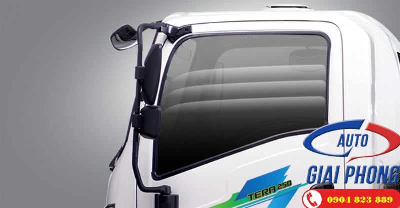 Gương xe được thiết kế đặc biệt, gắn trực tiếp vào cabin, mang tới tầm quan sát rộng đến tận đuôi xe, kể cả những điểm mù. Xe tải Tera 250 có 2 loại màu cho khách chọn lựa là màu trắng và xanh dương, được sơn trên dây chuyền công nghệ cao, nên không có chuyện bong tróc sơn,ố màu theo thời gian, khác hẳn so với những loại xe tải nhỏ khác lắp ráp bằng linh kiện trung quốc, đây chuyền kém chất lượng.