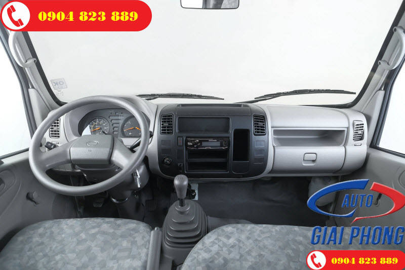 Với chiều rộng Cabin lên tới 1.810mm, thì phía bên trong cabin của xe khá là rộng rãi thoải mái so với các dòng phân khúc xe tải nhẹ cùng phân khúc. Xe trang bị ghế ngồi bọc nỉ 3 chỗ ngồi, ấm áp vào mùa đông và thoáng mát vào mùa hè. Tablo được bố trí khá hợp lý và khoa học với các phím bấm điều khiển bố trí thuận tiện cho người lái sử dụng. Thêm vào đó là các hộc để đồ quanh xe cũng rất hữu ích khi di chuyển chở hàng.